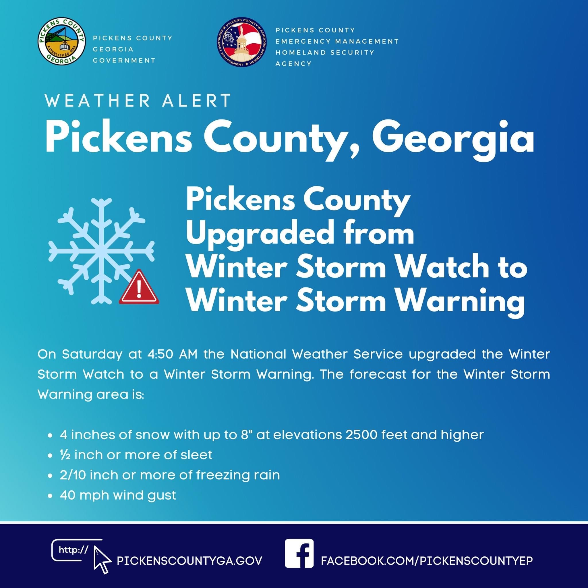Please โFollowโ the Pickens Emergency Management Homeland Security Agency Facebook page for additional updates as they become available.