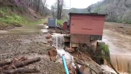 4.5 inches of rain recorded at City of Jasper water plant did damage throughout area. Shown here Long Swamp (Cove) Creek at City of Jasper water intake building. Isolated water outages in City.